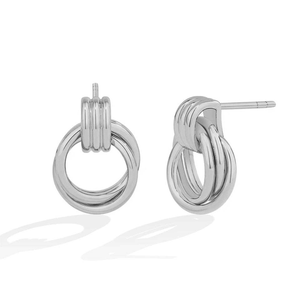 A vintage-inspired double hoop design crafted in S925 silver with an 18K gold–plated, steel-textured finish. Geometric lines meet soft luminosity for a look that feels both modern and timeless. Effortlessly refined, these studs add subtle statement to everyday elegance.